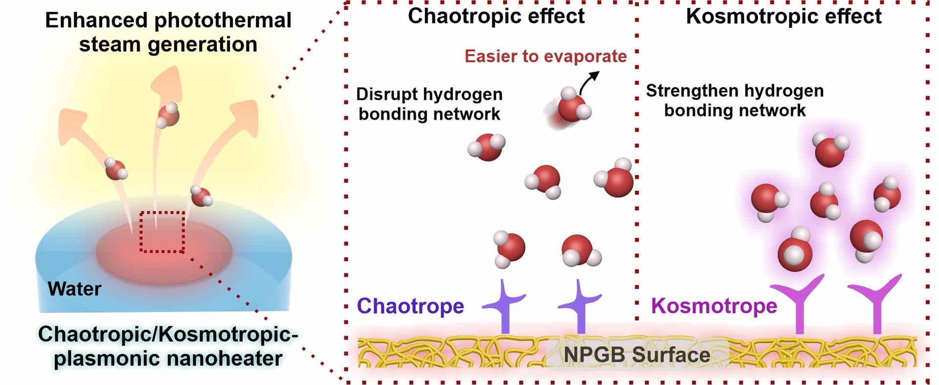 Material properties are usually modulated and enhanced by controlling their chemical, physical, and structural characteristics. However, these conventional material-based approaches have limitations, capping material performance. Here, our focus in on integrating functional molecules onto material surfaces to explore their impact on interactions with the surrounding chemical environment (e.g., water hydrogen bonding network if immersed in water). Our unique approach manipulates material-environment interactions directly at the point-of-contact, promising a performance boost beyond intrinsic material properties. We envision the parallel advancement in (1) functional surface chemistry and (2) materials engineering is crucial for accelerating progress in various applications, such as photothermal steam generation and green chemical fuel production.